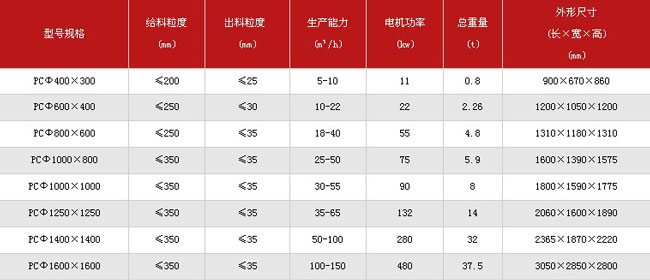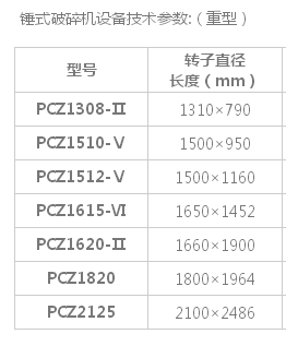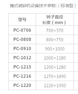 錘式破碎機技術參數