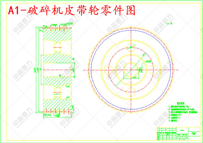 以上為800*800錘式破碎機主視圖、俯視圖、左視圖、主軸圖和皮帶輪零件圖,更多圖紙可以咨詢在線客服獲取。
