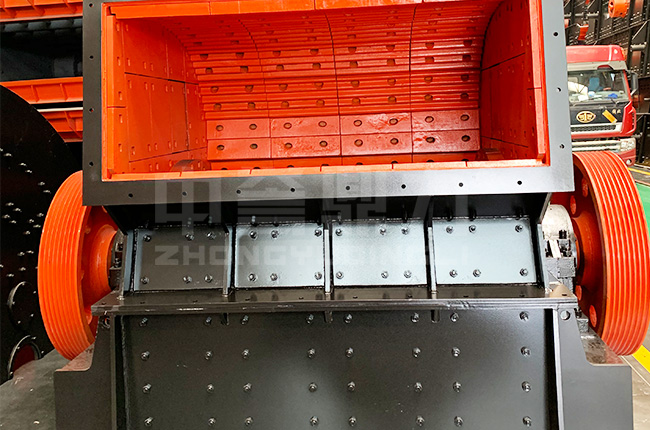 左側圖片就是反擊式粉碎機的結構圖,該設備主要由機架、襯板、反擊襯板、反擊架、進料斗、電機、傳動裝置等組成,其中反擊板分為三組,形成兩個粉碎腔,在第一個粉碎腔可以把≤850mm的物料粉碎成100mm以下。在第二個粉碎腔中可以把100mm的物料在粉碎至20mm以下,平常需要兩臺設備來粉碎,這里只需要一臺反擊式粉碎機,過程簡化為一段破碎,另外設備整體結構緊湊、外形美觀。
