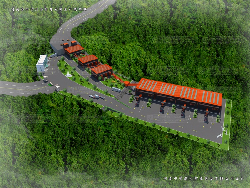 中譽鼎力生產線進料倉設置,可以同時滿足4輛60噸以上的礦車卸料;進料倉上部設置除塵器收塵,集中吸收并循環利用。