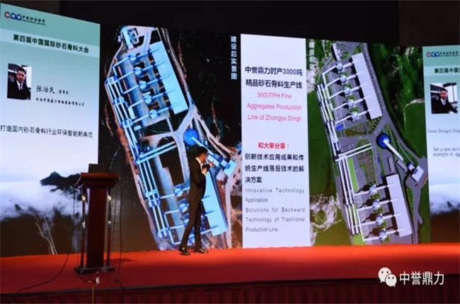 河南中譽鼎力智能裝備有限公司董事長張治民、副總經理原文秋受邀出席會議。張治民董事長發表了《打造內砂石骨料行業環保智能新》的主旨演講,以公司新建時產3000噸環保智能砂石骨料生產線為實例,分享了中譽鼎力砂石骨料生產線創新技術應用成果及傳統生產線落后技術的解決方案,與行業內、學者進行交流和探討。