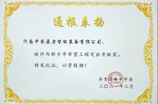 會(huì)議宣讀了《共青團(tuán)新鄉(xiāng)市委關(guān)于表?yè)P(yáng)2020年度集體和個(gè)人的通報(bào)》,對(duì)新鄉(xiāng)市過(guò)去一年在疫情防控、復(fù)工復(fù)產(chǎn)、脫貧攻堅(jiān)和鄉(xiāng)村振興等工作中取得成績(jī)的集體和個(gè)人進(jìn)行表彰——河南中譽(yù)鼎力智能裝備有限公司團(tuán)總支被授予“新鄉(xiāng)市五四紅旗團(tuán)(總)支部”;河南中譽(yù)鼎力智能裝備有限公司被授予“新鄉(xiāng)市希望工程突出貢獻(xiàn)獎(jiǎng)”!