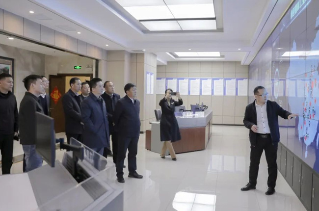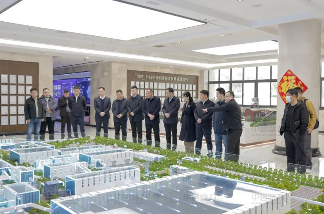 考察團一行先來到河南中譽鼎力智能裝備有限公司,實地參觀考察綠色建材工業互聯網大數據中心、五位一體循環建材產業園項目沙盤、十二位一體循環建材產業園項目沙盤、智能化一體生產車間等,對公司綠色建材項目承建運營及主要業務情況有了進一步了解。