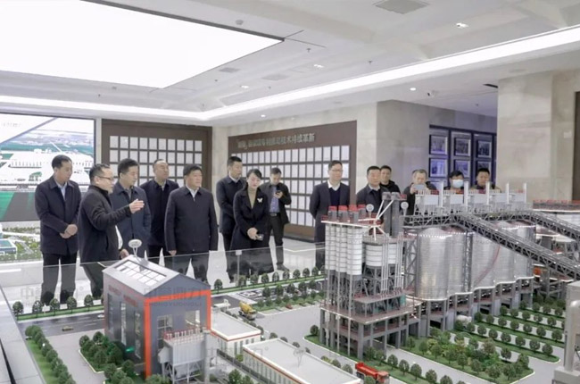 接著,考察團一行來到由中譽鼎力投資建設的“四位一體”循環建材產業園項目實踐基地——衛輝市遠大環保公司。深入了解中譽鼎力的環保生產工藝和智能管理模式。