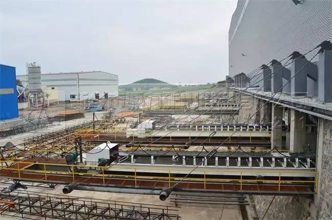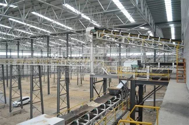 上圖為成品料料倉,布料皮帶機(jī)利用移動小車布料,提高石料存料量,每種產(chǎn)品存料量達(dá)到2.5萬噸,總存料量達(dá)到10萬噸。