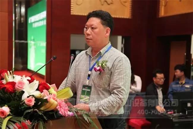 上圖為登封市嵩基水泥有限公司屈松江廠長在中譽鼎力砂石骨料生產線推介會上發表講話