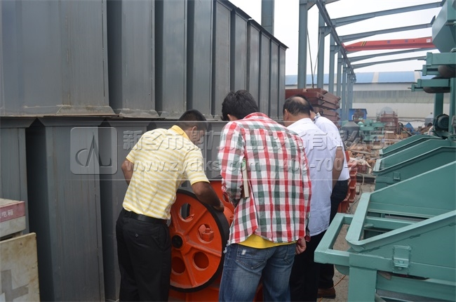 圖(3)帶客戶參觀顎式破碎機(jī)