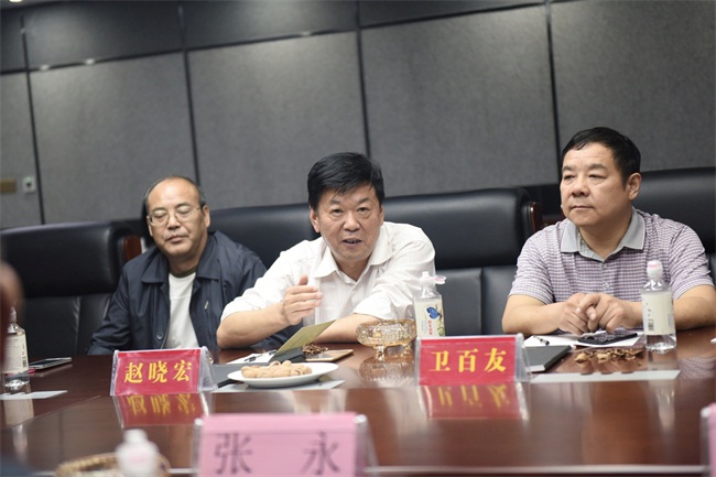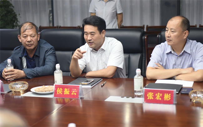 隨后,參觀導一行在中譽鼎力商務會議室舉行了座談。衛輝市政協副主席侯振云、中譽鼎力董事長張永向確山縣導介紹了衛輝市的礦山整合政策和近幾年礦山治理的情況,結合中譽鼎力生產線的建設背景,就該生產線的如何順應時代要求進行整合、升級,如何克服重重困難進行設計、建設,如何環保化、智能化、科學化運營進行了經驗分享。