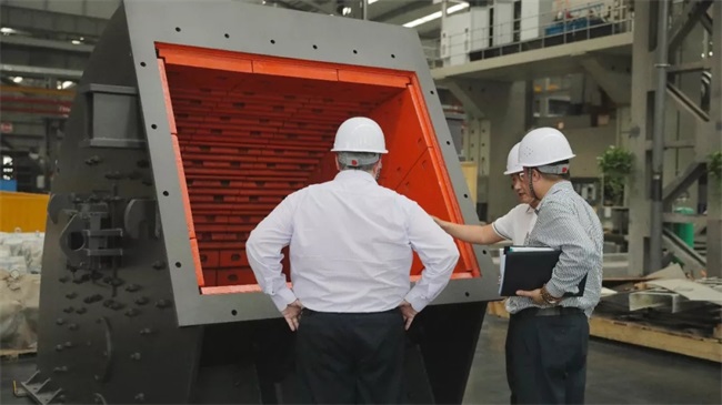 考察團(tuán)先來到中譽(yù)鼎力承建的衛(wèi)輝市資源有限公司時產(chǎn)3000噸砂石骨料生產(chǎn)線參觀,了解該項(xiàng)目在規(guī)模化、環(huán)保化、智能化的高砂石骨料生產(chǎn)方面的經(jīng)驗(yàn)。亞太總監(jiān) Glen先生多次表示impressive(驚嘆),據(jù)他介紹,在澳大利亞當(dāng)?shù)兀瑫r產(chǎn)300-500噸算是規(guī)模大的,也沒有封閉生產(chǎn)的概念。