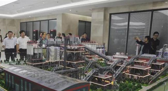 考察團一行參觀中譽鼎力五位一體循環建材產業園項目沙盤