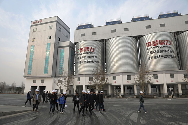 河南中譽(yù)鼎力智能裝備有限公司董事長張治民、中譽(yù)重工總經(jīng)理兼銷售總監(jiān)陳樹凱、湖北服務(wù)總經(jīng)理孫利江陪同,并詳細(xì)介紹各項情況。考察團(tuán)先參觀了中譽(yù)鼎力在衛(wèi)輝承建的代表項目——藍(lán)天環(huán)保材料有限公司四位一體建材項目和中譽(yù)鼎力EPC承建的資源有限公司時產(chǎn)3000噸砂石骨料生產(chǎn)線。