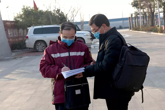 2月19日下午,新鄉市疾控導葉明等人在衛輝副市長董岐山的陪同下來到中譽鼎力,對我公司復工過程中的疫情防控工作進行檢查、指導。河南中譽鼎力智能裝備有限公司副總經理崔玉清、總經辦主任吳澤朋陪同接待,并匯報公司疫情防控工作的各項具體情況。