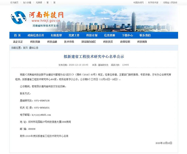 根據《河南省科技創新平臺建設與管理辦法(試行)》(豫科〔2016〕83號)規定,經單位申請、主管部門審核、評審、河南省科學技術廳廳長辦公會研究等程序,12月10日,省科學技術廳基礎研究院在河南科技網對擬新建省工程技術研究名單進行公示。