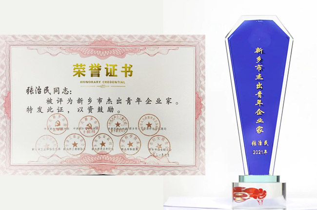 表彰會上,河南中譽鼎力智能裝備有限公司董事長張治民被授予“新鄉市杰出青年企業家”榮譽稱號!