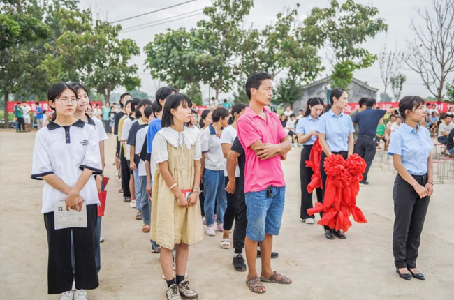8月26日下午,衛輝市委常委、辦公室主任、太公鎮黨委書記胡良,衛輝市副市長孫建明,衛輝市政協副主席崔福明,共青團衛輝市委書記鄭鑫,衛輝市教育局局長孫西,衛輝市教育局副局長焦元玉,衛輝市太公鎮黨委副書記、鎮長劉營斌,周邊32個村支部書記、受資助學生及家長、村民代表共計200余人參加捐贈儀式。