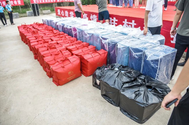 今年8月15日,中譽鼎力積響應希望工程活動號召,將愛心資助的12萬元助學金發放到來自衛輝各鄉鎮的40名大學生手中。8月26日,“資助太公鎮古子澗村品學兼優學生活動捐贈儀式”在衛輝市太公鎮古子澗村文化廣場舉行,張治民董事長又代表中譽鼎力分子公司——衛輝市藍天環保材料有限公司對古子澗村31名學生進行愛心物資捐贈。