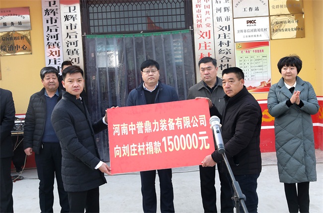 12月28日上午,河南中譽鼎力智能裝備有限公司扶貧捐贈儀式在衛輝市后河鎮劉莊村溫馨舉行。衛輝市委常委、統戰部長、市常務副市長李海潮、衛輝市人大常委會副主任史紅宇、衛輝市委統戰部副部長、工商聯黨組書記唐金江、衛輝市工商聯合會會長徐躍慶、衛輝市后河鎮黨委書記徐林峰等導出席捐贈儀式,河南中譽鼎力智能裝備有限公司董事長張治民代表公司進行現場捐贈,劉莊村部分村民參加儀式,共同見證了這激動人心的時刻。