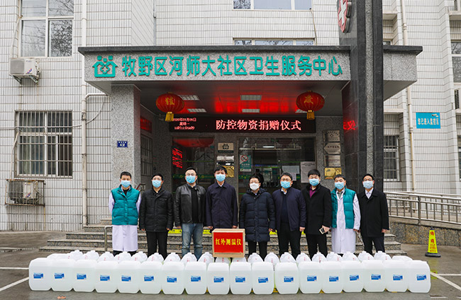 3月9日上午,中譽鼎力向河南師范大學捐贈一批總價值近10萬元的防疫物資(包括紅外測溫儀123支、84消毒液500千克、醫用酒精400千克),用于冠狀病毒肺炎疫情的防控工作,以實際行動踐行企業責任與擔當,為堅決打贏疫情防控阻擊戰貢獻一份力量。