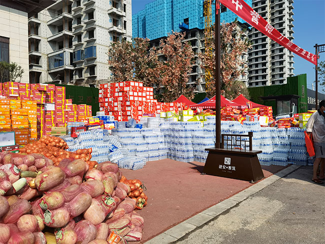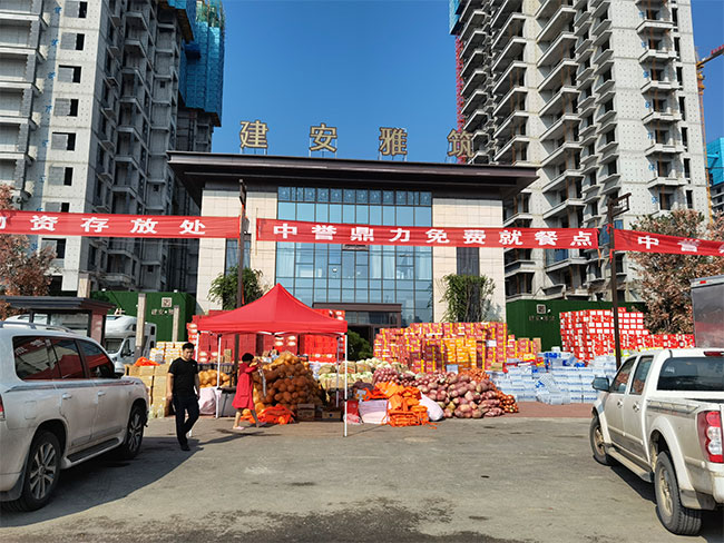 衛輝暴雨救援|中譽鼎力在建安雅筑設立救助站,配送水、食品與蔬菜物