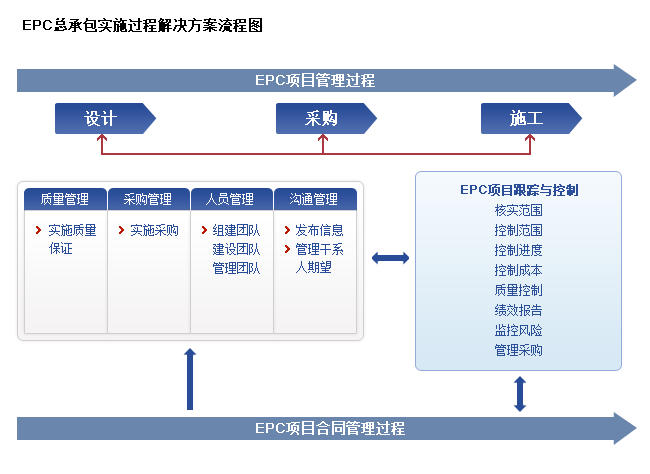 所謂EPC工程總承包項目指的是公司受到業主的委托,按照合同的約定對工程建設項目的設計、采購、施工、試運行等過程或者是若干階段的承包,并對整體工程的質量、安、費用、進度等權負責。