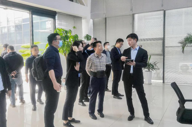 春和景明,再訪鼎力。4月15日下午,中譽鼎力迎來了一批重要的客人——廣東東升實業集團董事長賴松谷、總裁賴志光一行的次來訪。中譽鼎力智能裝備有限公司董事長張治民、銷售副總監代志鵬熱情接待,并介紹公司相關情況。