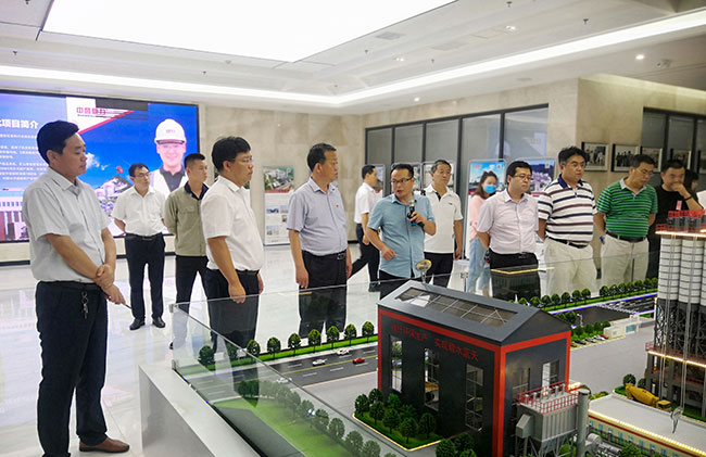 在中譽鼎力智能裝備有限公司綜合辦公樓,調研導先后參觀了企業文化墻和多位一體循環建材產業園項目沙盤,并觀看了公司宣傳片,對中譽鼎力發展歷程、主營業務、業績榮譽等情況有了進一步了解。