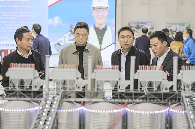 然后,考察團一行前往中譽鼎力投資建設的多位一體循環建材產業園項目——衛輝市藍天環保材料有限公司“四位一體”大型建材項目實地參觀。參觀期間,考察團成員不僅對該項目所具備的綠色、智能、集約、等優勢有了進一步認識,并在生產現場一睹中譽鼎力履帶式錘破移動破碎站的風采。