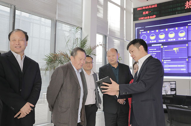 張鐵崗院士一行先來(lái)到由中譽(yù)鼎力投資建設(shè)的多位一體循環(huán)建材產(chǎn)業(yè)園項(xiàng)目實(shí)踐基地——衛(wèi)輝市藍(lán)天環(huán)保材料有限公司“四位一體”大型建材項(xiàng)目調(diào)研,深入了解建材生產(chǎn)智能管理模式。