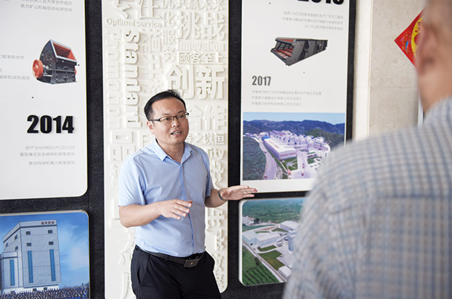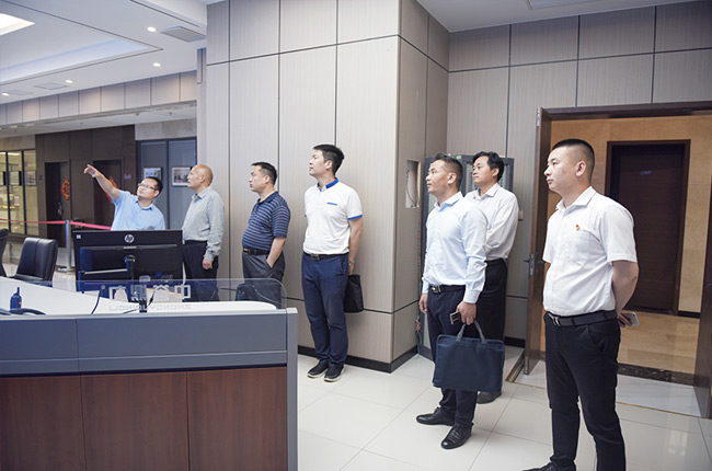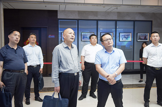 中譽鼎力智能裝備有限公司總經理楊乾、行政副總經理崔玉清、企管中心吳澤朋程陪同,并匯報公司生產經營情況。