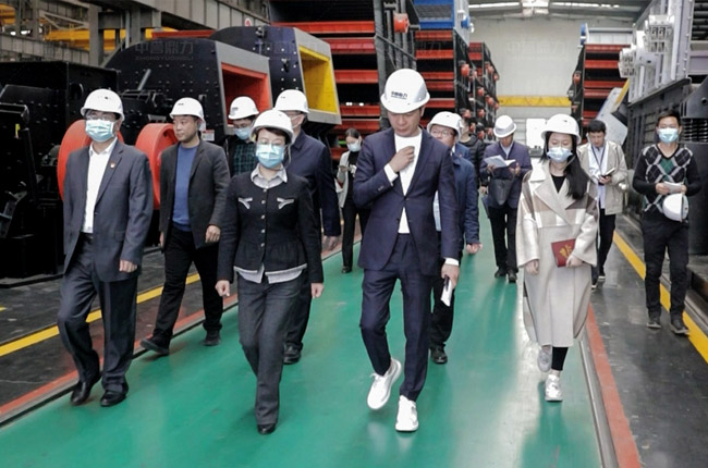 在中譽鼎力智能化一體生產車間,調研領導詳細了解設備研發、生產線建設運營礦山智能管理系統開發推廣等情況,并勉勵企業要不斷,不斷擴大影響力和競爭力。