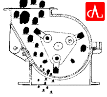 錘式破石機由箱體、轉子、錘頭、反擊襯板、篩板等組成。在工作時,轉子(盤)在電機的帶動下高速旋轉,物料從機器上不落入機腔內,落入高速旋轉的轉盤,在高速離心力的作用下,與機腔內的物料產生碰撞形成快速次破碎;錘頭在高速旋轉的轉子帶動下對物料進行打擊形成次破碎,同時物料獲得很大的動能撞向強內壁的反擊板,形成第三次碰撞破碎,這樣物料在機腔內受到打擊、研磨,直到物料粒度小于錘頭與調節襯板之間的間隙排除機腔。