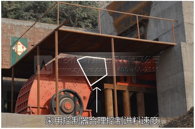 針對大石頭破石機堵料的問題,可以采用控制器控制破碎機進料速度,按照合理的進料速度進料,不能過破石機的承載負(fù)荷,可以避免物料在一瞬間部擁堵在進料口那里,影響物料正常進入排出。
