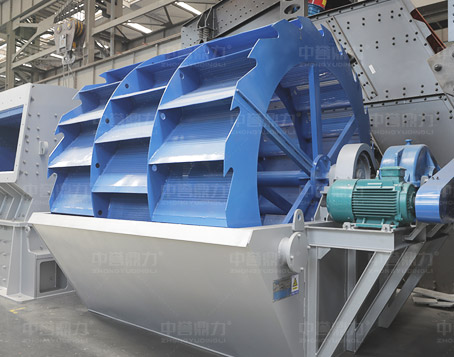 洗砂機工作時,電機通過三角帶、減速機、齒輪減速后帶動葉輪緩慢轉動,砂石由給料槽進入洗槽中,在葉輪的帶動下翻滾,并互相研磨,除去覆蓋砂石表面的雜質,同時破壞包覆砂粒的水汽層,以利于脫水;同時加水,形成強大水流,及時將雜質及比重小的異物帶走,并從溢出口洗槽排出,完成清洗作用。干凈的砂石由葉片帶走,后砂石從旋轉的葉輪倒入出料槽,完成砂石的清洗作用。
