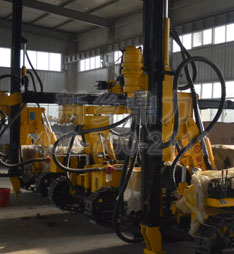 整機(jī)采用液壓傳動(dòng)、自動(dòng)除塵、自動(dòng)卷電纜、履帶式行走、液壓油缸支配平行四邊形升降,在采掘巷道內(nèi)可進(jìn)行移動(dòng)、升降、多臂錨桿鉆孔作業(yè),鉆機(jī)所有的操縱都由手柄集中控制,完實(shí)現(xiàn)機(jī)械化。