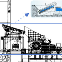 設(shè)備采用加長型恒定破碎腔設(shè)計,腔型長度相當(dāng)于傳統(tǒng)旋回破碎腔的1.3-1.5倍。礦石在破碎腔內(nèi)可實現(xiàn)多層級破碎,進(jìn)而獲取更大的破碎比。(恒定破碎腔是指在破碎過程中軋臼壁與破碎壁成比例均勻磨損,腔型形狀保持不變。)