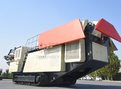 履帶式移動(dòng)破碎站的破碎、篩分、液壓、發(fā)動(dòng)機(jī)等模塊均安裝在移動(dòng)底盤上,可以在普通公路和較復(fù)雜地區(qū)靈活移動(dòng)