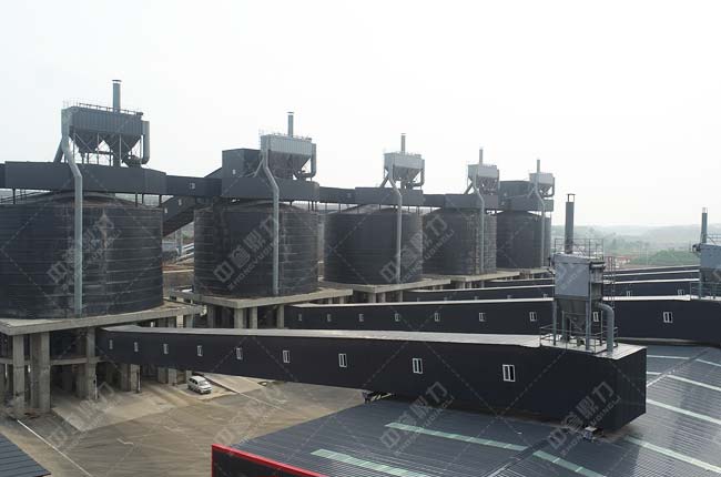 3、成品料分別儲存于5座圓形儲料倉內,每個圓形儲料倉庫存量為1萬噸,各倉底均設有自動裝車系統和稱重系統。