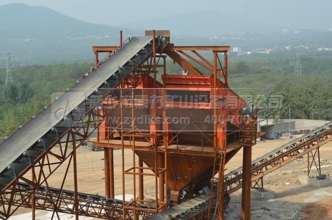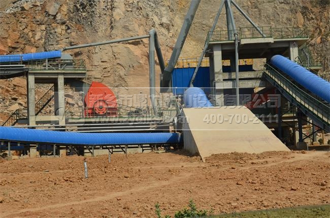 此條生產線時產600噸;基本配置:PCZ1615重型錘式破碎機、PC1213錘式破碎機、ZG1538給料機、3YKZ2670×2振動篩、2YKZ2670×2振動篩。