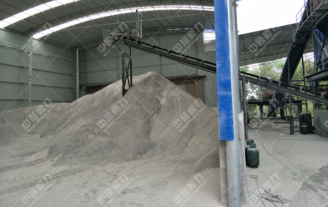 中譽鼎力為我們設計的這條時產50噸干式制砂生產線從原材料到設備,再到后的出料都用鋼架廠房密封,加之配套的除塵器設備的安裝,真正實現了綠色環保制砂,從生產現場大家也可以看到,沒有一點灰塵,并且出來的成品砂粒形好,直接供給干粉砂漿攪拌站用。