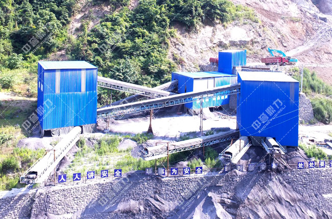 設備配置:振動給料機ZGC1550、錘式破碎機PCZ1615、整形機PC1216、振動篩2YKZ3070