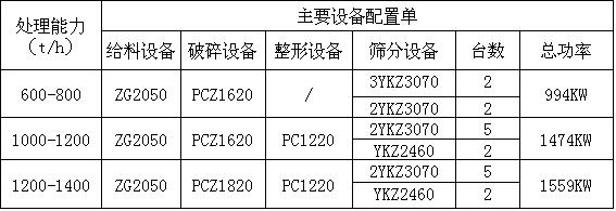 石子生產(chǎn)線由于產(chǎn)量規(guī)模不同,配置的設(shè)備也不同,新鄉(xiāng)鼎力為新老客戶配置生產(chǎn)線,從時(shí)產(chǎn)50噸-1600噸之間的生產(chǎn)線都可以進(jìn)行配置,簡(jiǎn)單的介紹下時(shí)產(chǎn)1200-1400噸、時(shí)產(chǎn)1000-1200噸、時(shí)產(chǎn)600-800噸大型石子生產(chǎn)線配置的設(shè)備,如下圖: