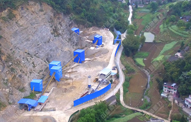 原礦石先由震動喂料勻稱的送至鄂式粉碎機做出粗碎設備,接著物料被傳送帶送至圓錐式粉碎機做出細破,之后物料送至碎沙機做出整型破碎,粉碎出的物料經振動篩分機篩選分級成四個不同尺寸的成品堆,不完善物料返回上一程序做出二次粉碎,此條生產線既能夠生產小石子,也能夠碎沙機,成品尺寸分別是0-5毫米,5-10毫米,10-20毫米,20-30毫米;能夠順應不一樣的生產需求,一舉多得。
