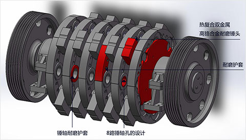 錘軸孔上設(shè)計(jì)護(hù)套、轉(zhuǎn)子盤上設(shè)計(jì)護(hù)圈,性高,無(wú)需每天更換,哪塊有損壞更換哪塊,增加了開機(jī)時(shí)間