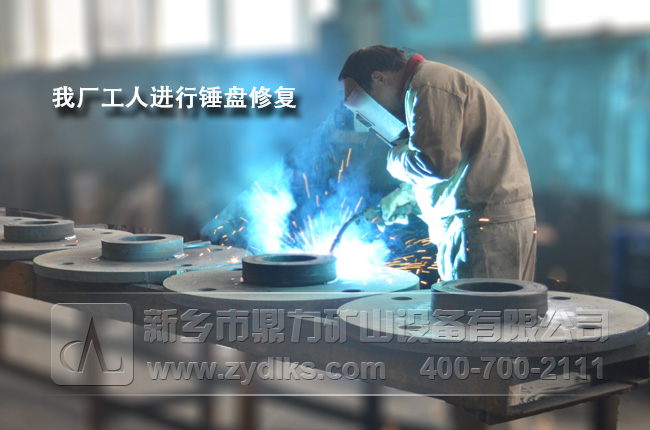 錘盤(pán)先受到磨損的表現(xiàn)是錘盤(pán)外緣處受到磨損,錘盤(pán)外緣處受到磨損不僅會(huì)導(dǎo)致轉(zhuǎn)子運(yùn)行不平穩(wěn),而且將會(huì)加劇錘頭的磨損,需要不斷更換錘頭,不僅浪費(fèi)生產(chǎn)時(shí)間,還增加了生產(chǎn)成本,應(yīng)該對(duì)其磨損外緣進(jìn)行反復(fù)堆焊,可以使得層磨損后,使得錘盤(pán)本身不會(huì)受到直接磨損,在堆焊的材料選用上,選用高合金焊接材料,含有多種合金材質(zhì),使得堆焊過(guò)后的錘盤(pán)具有高性和抗沖擊性。