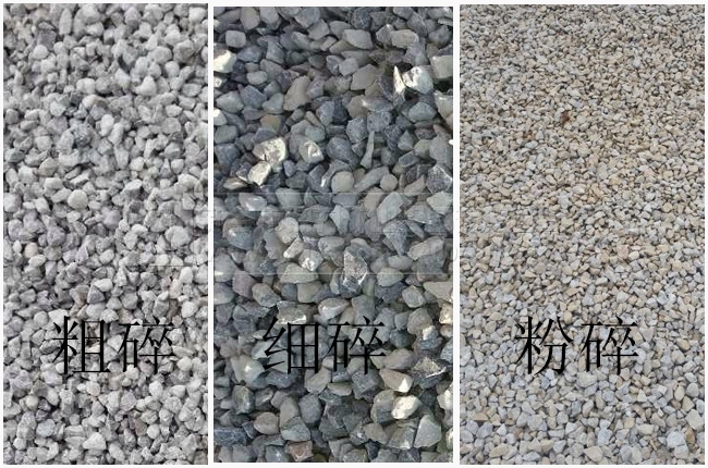 上圖為粗碎、細(xì)碎、粉碎分別得到的成品物料