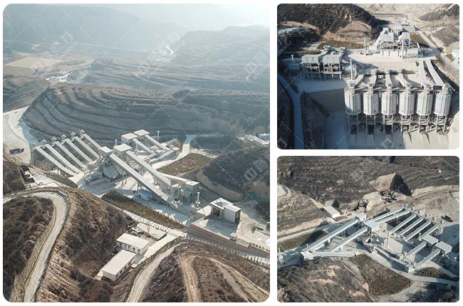 鑫錦威建材有限公司時產(chǎn)1500噸砂石生產(chǎn)線鳥瞰圖,時值初冬,植被泛黃