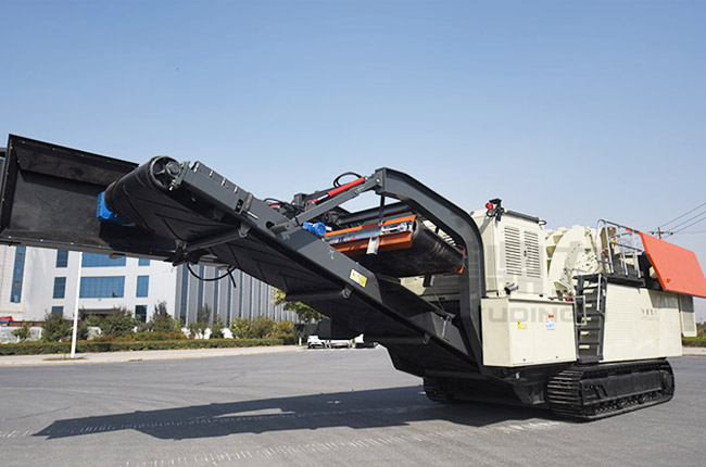 移動式破碎機集給料、破碎、篩分等系統于一體,按照搭載方式不同,移動式破碎機有履帶式和輪胎式兩種,主要應用在建筑垃圾處理、道路施工建設、小型石場等場景,根據加工物料的不同,可以搭載不同種類的破碎設備。關于移動破的產能,時產300-500噸是咨詢量比較高的型號,本文就以時產300噸,搭載錘破為例,介紹下一小時產300噸移動破碎機的型號參數和價格問題。