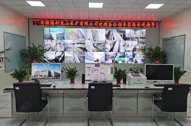 安徽宿州港利龍山砂石骨料生產(chǎn)線智能化系統(tǒng)中控室,運(yùn)行情況一目了然